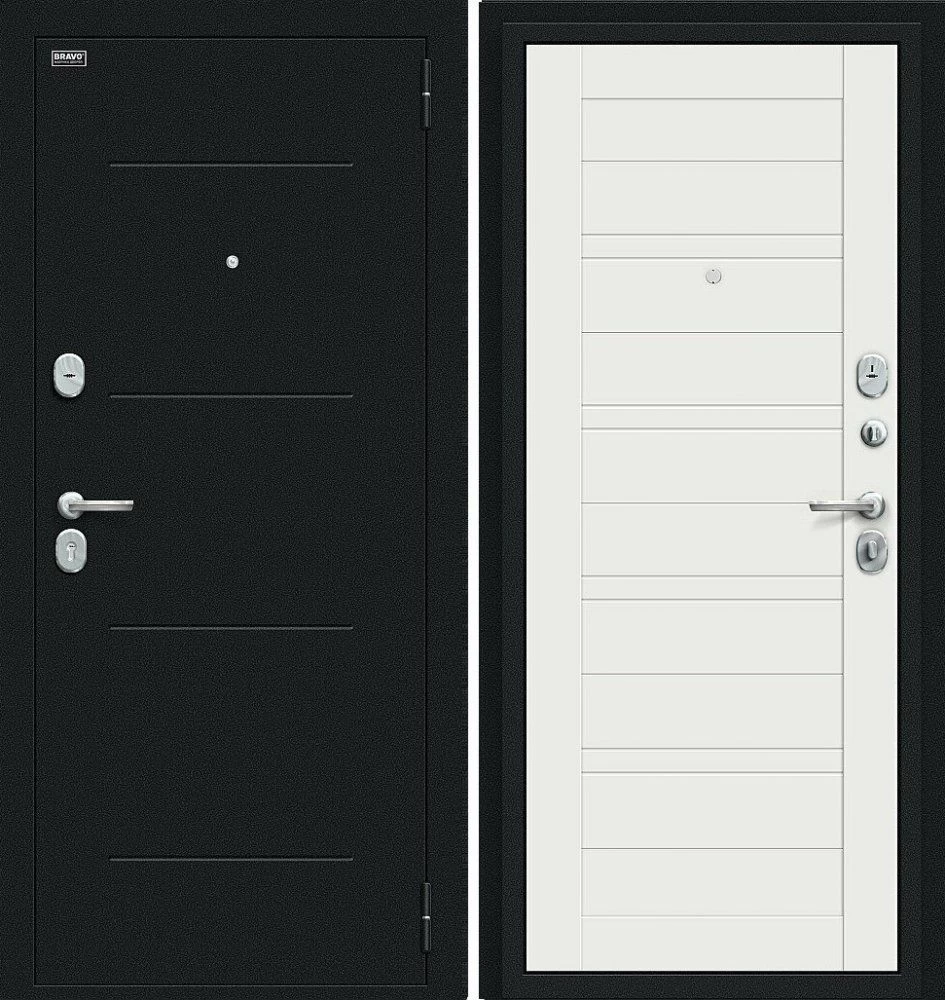 Надежная входная Дверь Браво Сити Kale Букле черное/Off-white премиум класса по цене 31 970 руб. Большая толщина стали защитит от проникновения в ваш дом, квартиру или коттедж. Используется очень качественная фурнитура: замки, цилиндры, ручки, защелки. Покрытие и отделка двери изготовлено под внимательным контролем производителя. Дверь имеет долгий срок службы и гарантию.