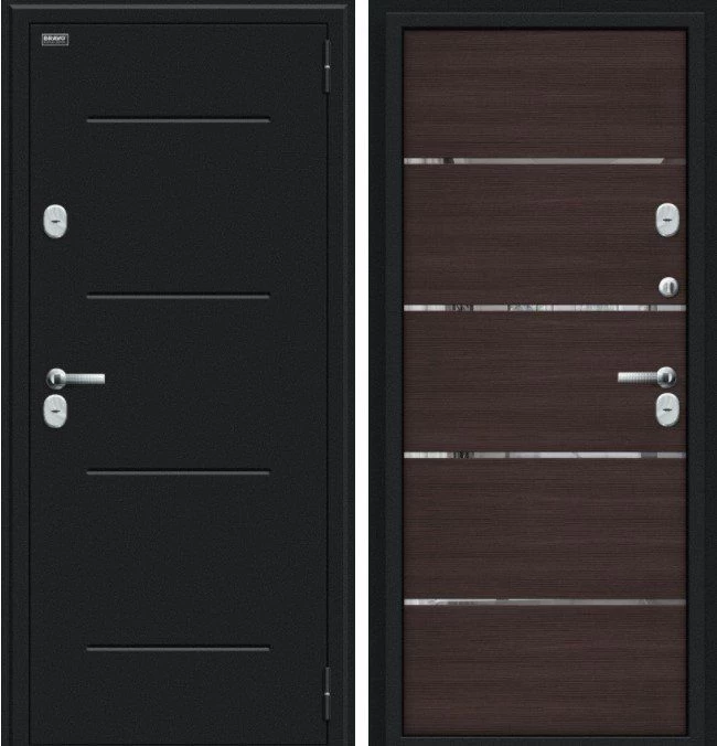 Надежная входная Дверь Браво Thermo Лайн Букле черное/Wenge Veralinga премиум класса по цене 43 350 руб. Большая толщина стали защитит от проникновения в ваш дом, квартиру или коттедж. Используется очень качественная фурнитура: замки, цилиндры, ручки, защелки. Покрытие и отделка двери изготовлено под внимательным контролем производителя. Дверь имеет долгий срок службы и гарантию.